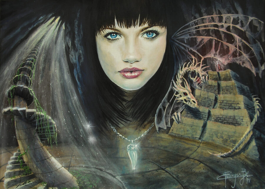 I studied at the Faculty of Fine Arts, Complutense University of Madrid, and in 2007 I graduated in Fine Arts. While I was studying in 2004, a writer contacted me to draw (in «Magic» style) the 22 arcana of a deck of cards that she was creating. I took on this project as an apprenticeship since I decided to solve them digitally, I had to learn on the fly to use Photoshop and Illustrator.